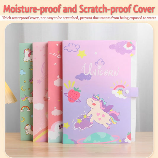 Kids A4 File Folder with Button Lock | Cartoon Theme 6-Pocket Expandable Organizer for Certificates & Test Papers | Assorted prints(Pack of 1)